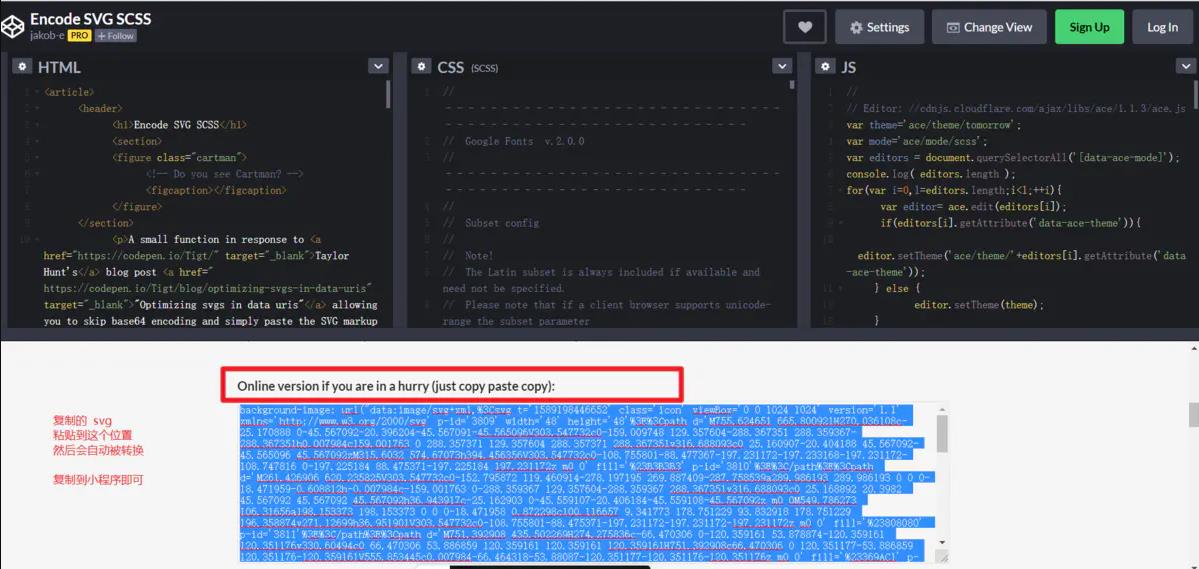 復(fù)制 svg 代碼 注意這里直接使用該url在小程序中是不行的,存在編碼錯(cuò)誤 下面是一個(gè)轉(zhuǎn)編碼的網(wǎng)站